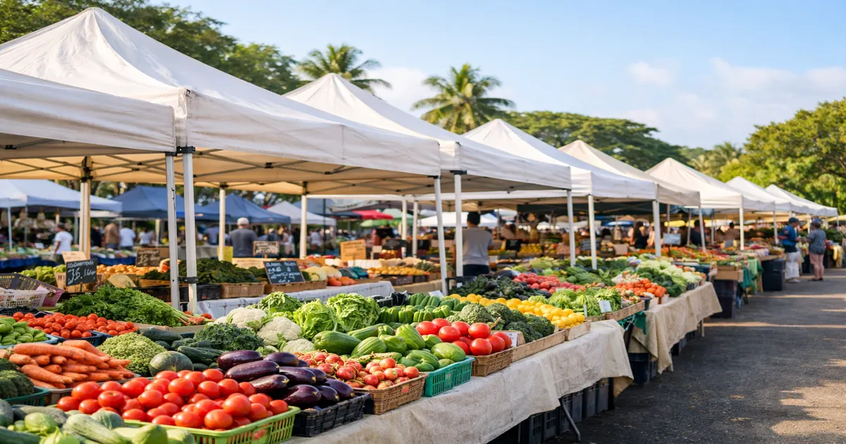 土曜日の午前中に開催される Kapiʻolani Community College(KCC)Farmers’ Market は、地元農家の野菜が多く並ぶマーケットです。葉物野菜、トマト、根菜、ハーブなど、収穫されたばかりの野菜を直接手に取ることができます。
